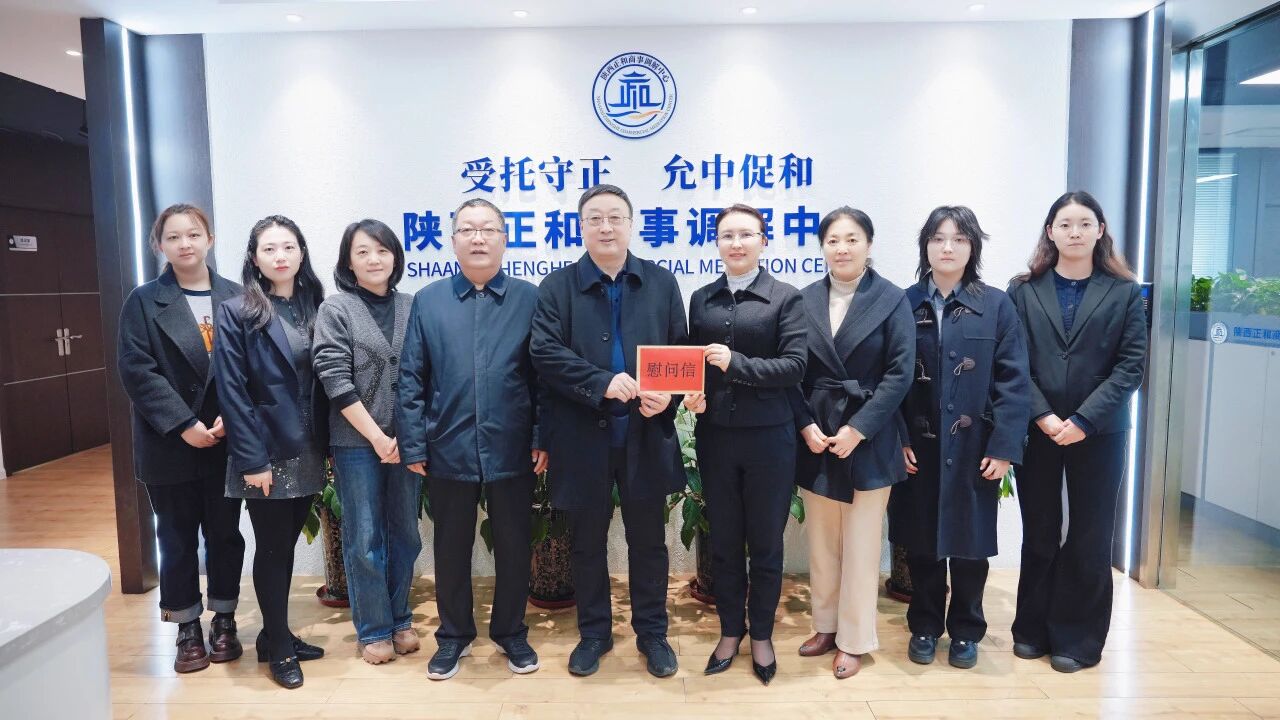 发布时间:2026-02-14近日,陕西省调解协会会长麻仁伟、秘书长刘美琳一行莅临陕西正和商事调解中心开展新春慰问调研活动,向省调解协会副会长、行业性专业性调解工作委员会主任、陕西正和商事调解中心理事长张萌送上新春慰问信与感谢信,既致以节日的美好祝福和诚挚问候,也对中心及张萌同志过去一年深耕商事调解领域的突出贡献予以高度肯定和诚挚致谢。调研组一行与中心核心团队开展座谈交流,深入调研商事调解工作开展情况,为中心2026年工作发展把脉定向、鼓劲赋能,推动全省商事调解工作高质量发展,助力新时代“枫桥经验”陕西实践走深走实。