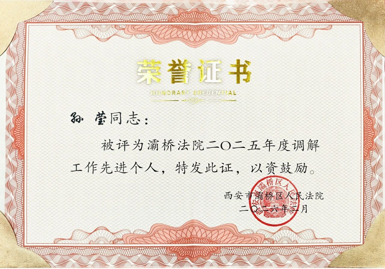 陕西正和商事调解中心获评灞桥法院优秀调解组织