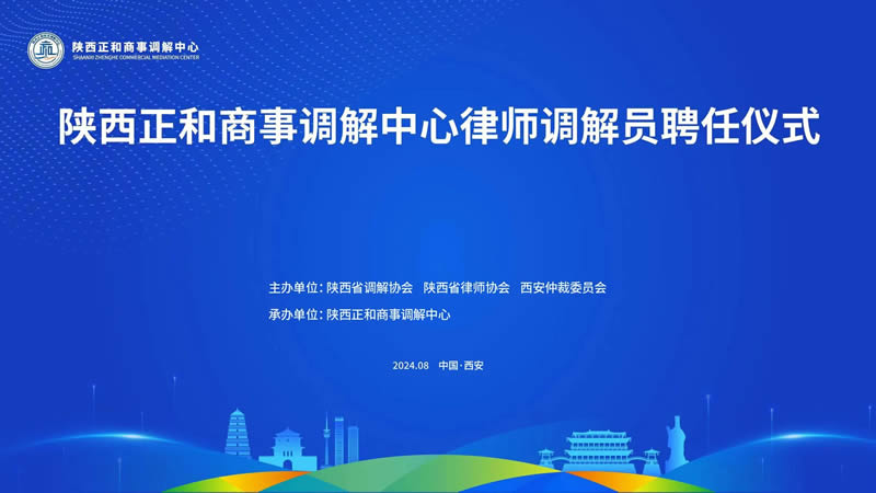 为深入学习贯彻习近平总书记法治思想,认真落实党的二十大报告关于“完善社会治理体系,健全共建共治共享的社会治理制度,提升社会治理效能”的部署要求,打造专业化、规范化的商事调解队伍,8月23日下午,由陕西省调解协会、陕西省律师协会、西安仲裁委员会主办的“陕西正和商事调解中心律师调解员聘任仪式”在西安隆重举行,标志着陕西正和商事调解中心的工作又迈上了一个新的台阶。
