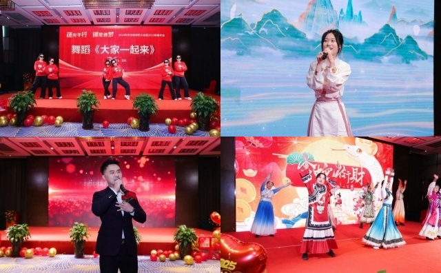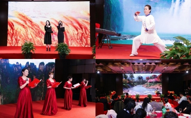 晚宴环节,歌曲、舞蹈、太极拳、诗朗诵、小品等一系列匠心独运、创意无限的节目表演不仅为年会增添了无限欢乐与温馨,更成为了连接每一位参与者心灵的桥梁。这些令人难忘的瞬间,体现了表演人员由内而外散发的热情与才华,见证了年会舞台上绽放的璀璨星光,展现了团队的实力和凝聚力。