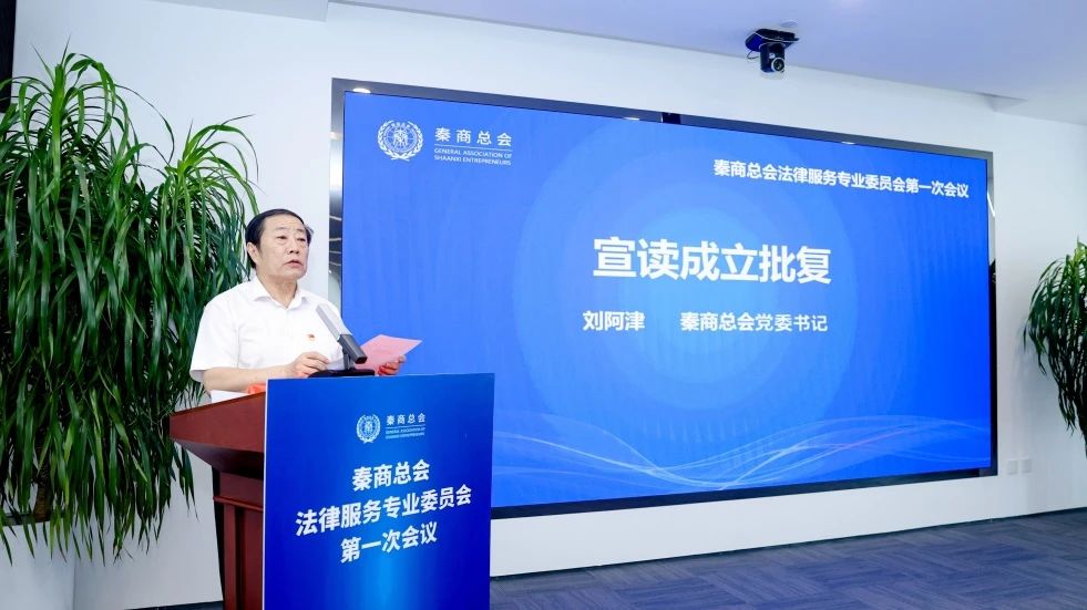 会上,秦商总会党委书记刘阿津宣读了《关于同意筹备成立秦商总会法律服务专业委员会的批复》。明确了法专委的定位与职责,为法专委工作开展提供了重要制度支撑。
