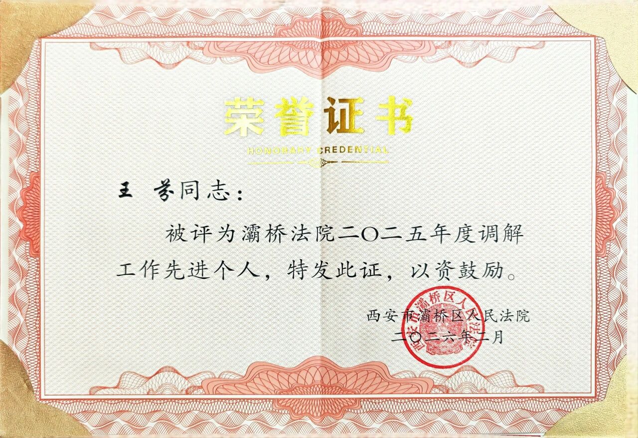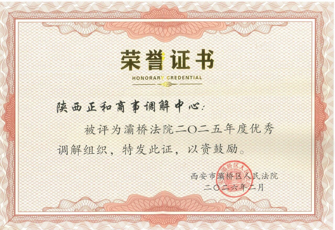 陕西正和商事调解中心获评灞桥法院优秀调解组织
